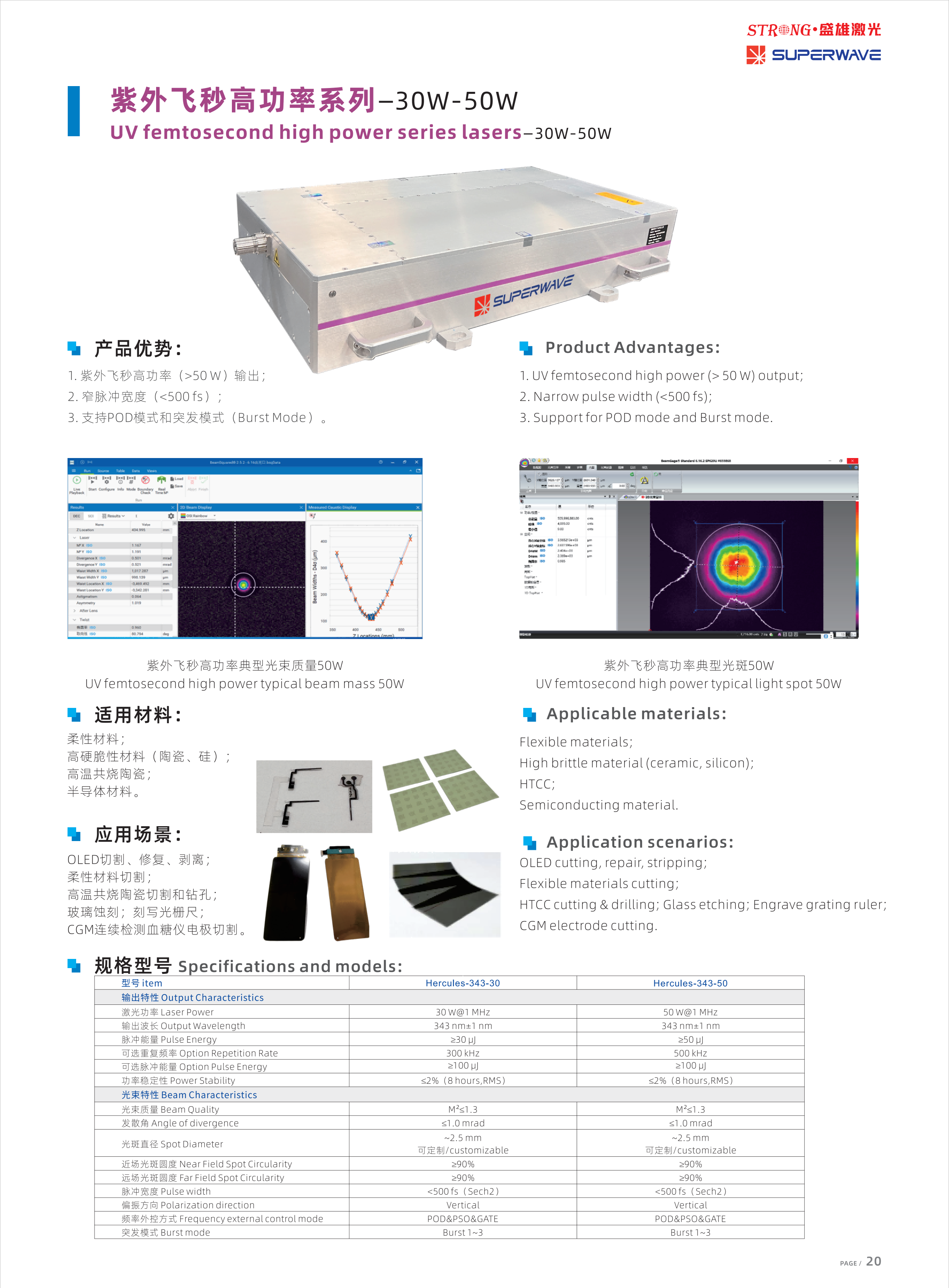 1. High average power (> 500 W) and high repetition frequency (5 MHz) output, processing efficiency is remarkable;